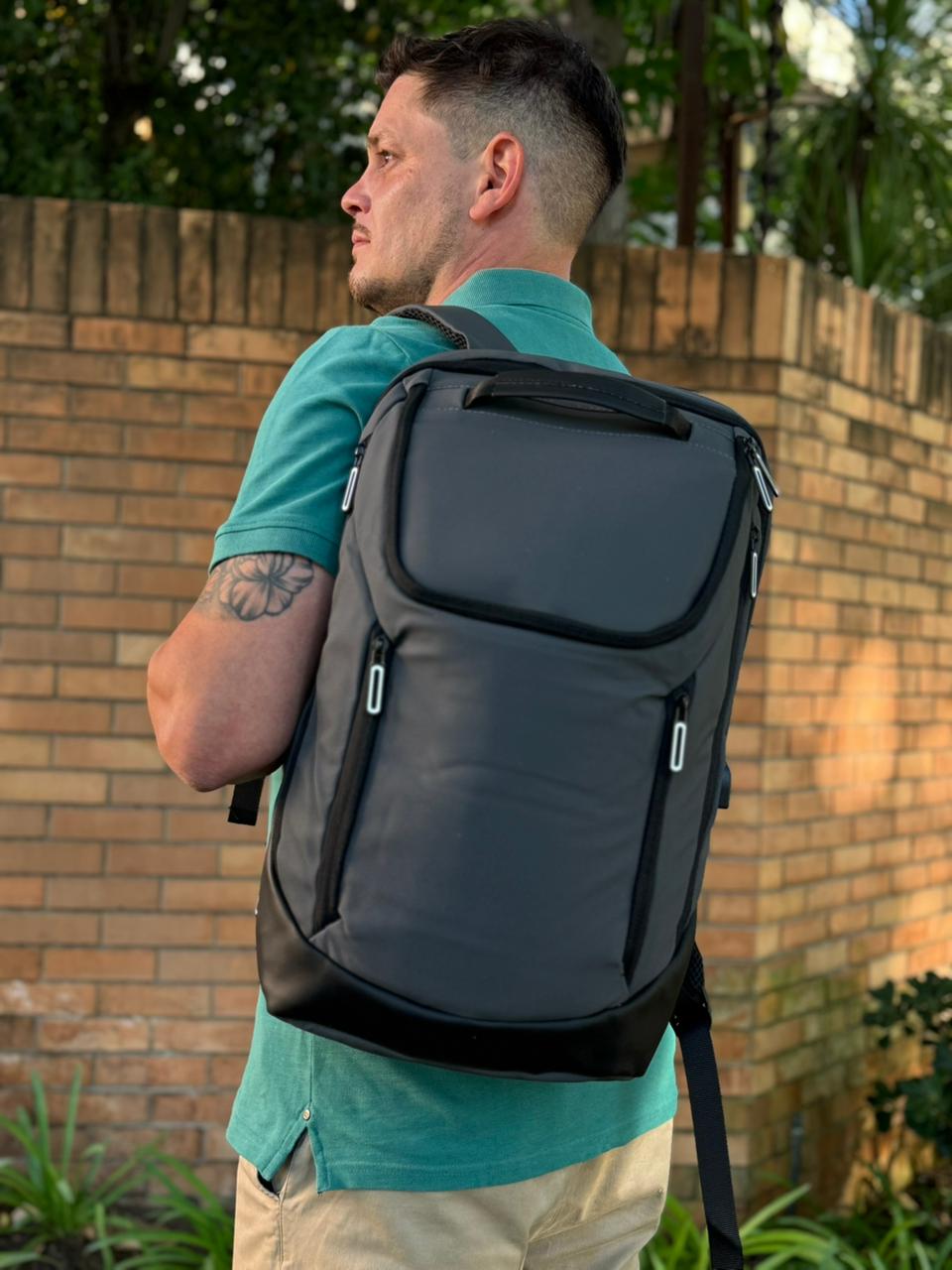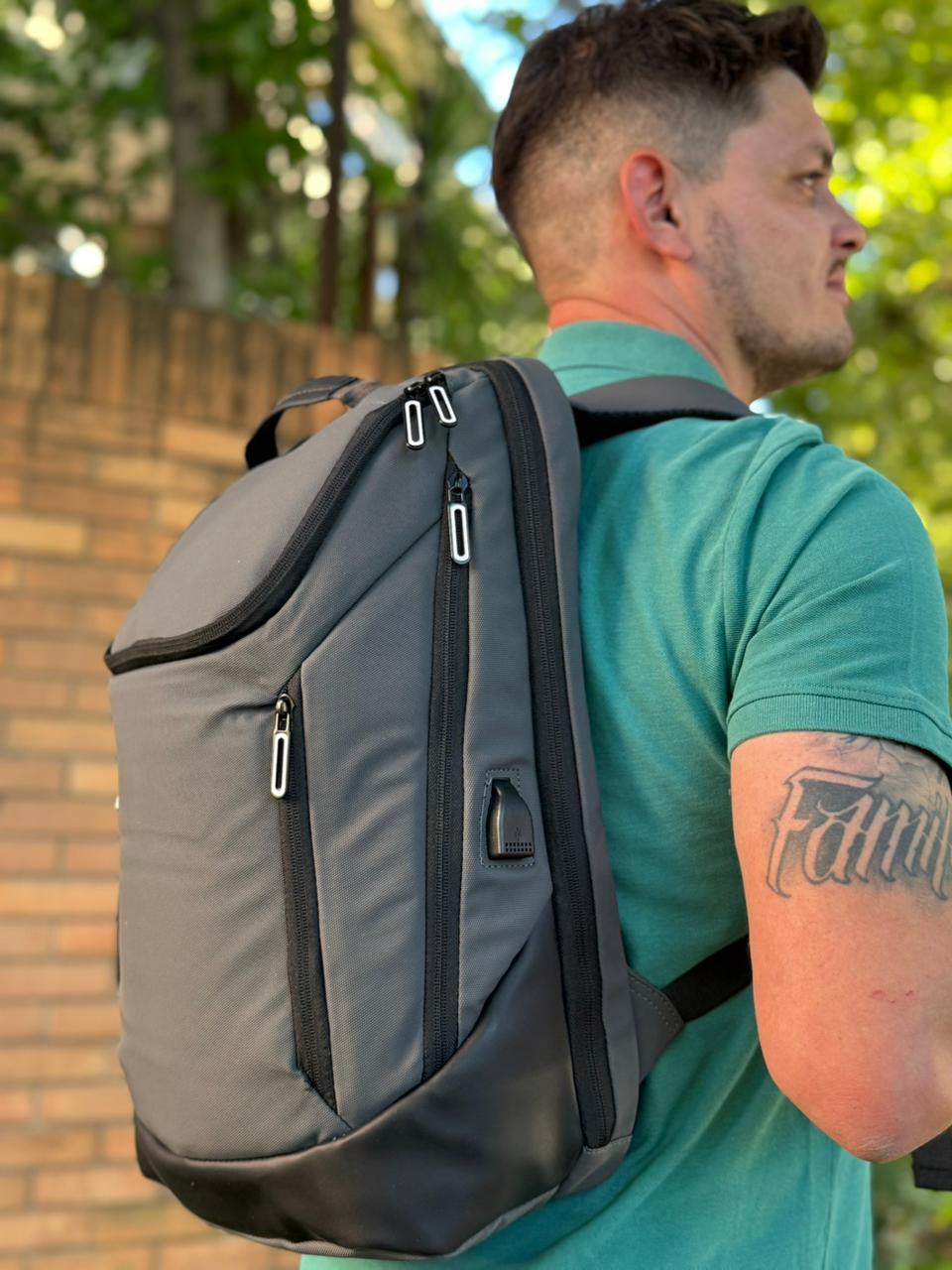 ▪️Dos bolsillo exteriores laterales con cierre vertical, uno de ellos con entrada USB (incluye cable usb).